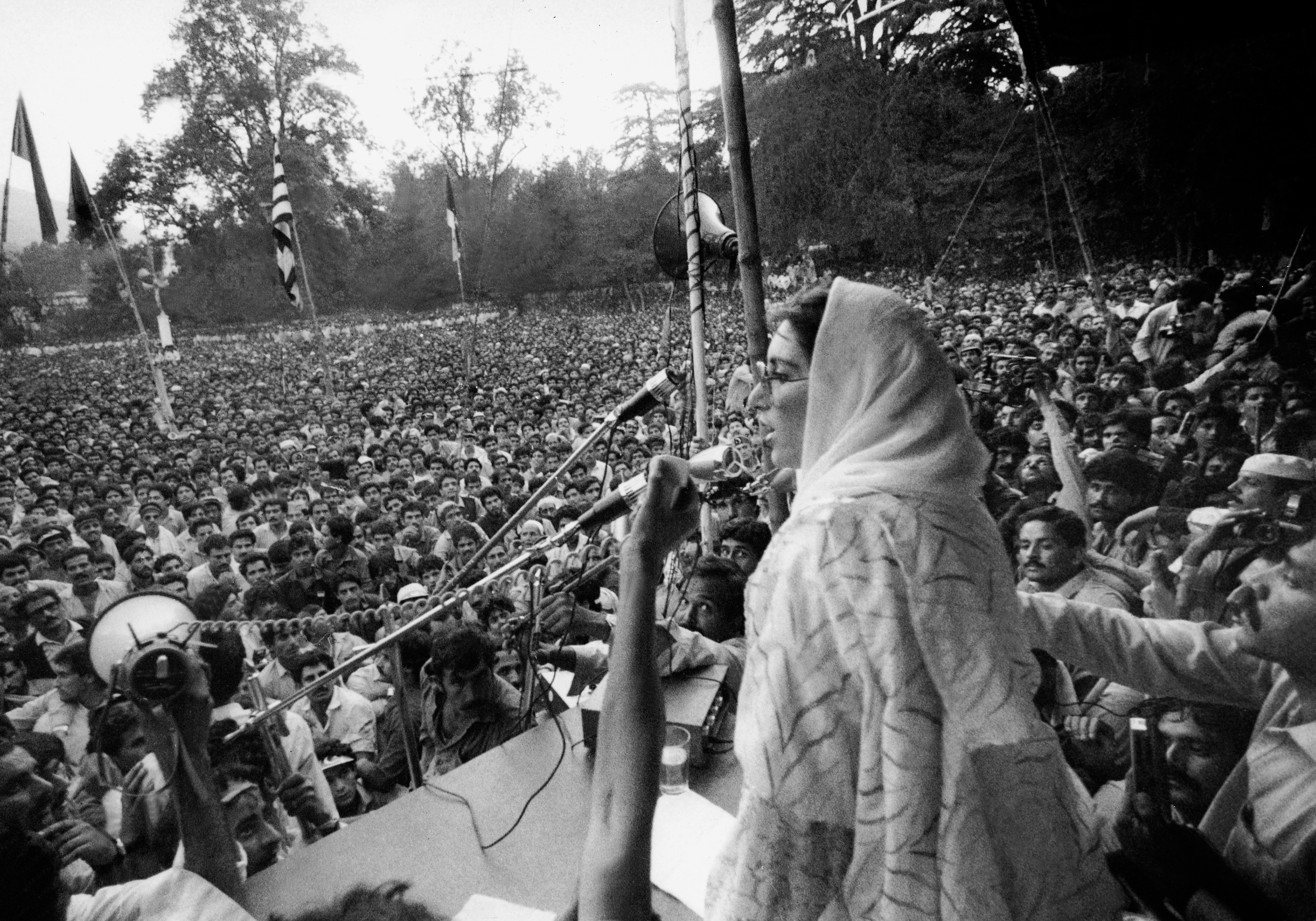 В 1988 году умер организатор переворота и фактический лидер страны генерал Мухаммед Зийя. В стране состоялись прямые выборы, и на них победила Беназир Бхутто. Она дважды избиралась премьер-министром Пакистана от ПНП, руководство партией она унаследовала от отца. В автобиографии Бхутто писала, что не хотела заниматься политикой профессионально, но "эта жизнь выбрала" ее. В предвыборных кампаниях она всегда делала упор на демократические реформы и жестко критиковала военных, которые за годы правления хунты усилили свое влияние в государственных органах.