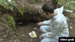 "Вот, кстати, какой-то уголок металлический торчит: возможно, это лом конструкций, которые на себе что-то имели. 10.8, 10.7 микрозиверта в час – около тысячи микрорентген. И это нашим бытовым приборчиком, которым можно измерять продукты", – показывает Павел Тарасов.